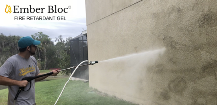 Ember Bloc is a fire blocking gel dry powder concentrate that's classified as a water enhancer that can be applied with a pressure washer using our special pressure washer applicator/eductor attachment. We strongly recommend that every Homeowner in a wildfire prone area (especially California homeowners) have one of these systems ready to go. Recent tests and scientific research have shown Ember Bloc to be more effective in terms of withstanding heat and flames compared to other commercial fire gels, Class A foams, and other short term water enhancers that have been on the market for some time. Ember Bloc holds up way better than commercial superabsorbent polymer fire gels. Ember Bloc is a short term fire retardant gel that comes in a dry powder form. It can last anywhere from 12-24 hours after it is applied with a pressure washer and has the ability to be rehydrated by lightly misting it with water. Ember Bloc can be applied to the exterior of your house and surrounding structures to help protect against both embers and flames in a wildfire. It has a unique ability to viciously cling onto the side of a house to withstand high heat and windy conditions. No other fire blocking gel on the market can stick to the side of a slippery vertical surface like Ember Bloc. Other fire retardant gels and foams slump too much. This is what makes Ember Bloc the best! Its also environmentally friendly and simply rinses off with a pressure washer.