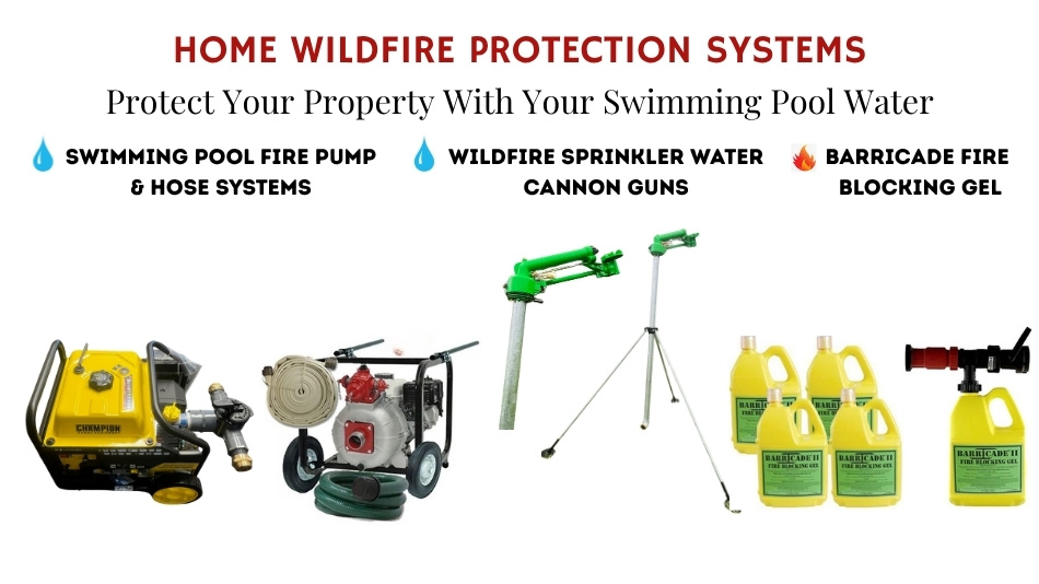 If your house has a swimming pool and is located in a wildfire prone area, you should own a Swimming Pool Fire Suppression System like this high performance one and have it ready to go at all times. It's a small investment that could save everything you own. Call us for a Free Phone Consultation where we'll focus on recommending the most cost effective swimming pool firefighting pump package with the correct length of fire hose to defend your specific property.